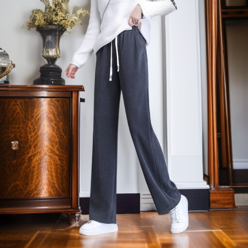 ● 넉넉한 와이드핏과 빅사이즈 구성으로 다양한 체형도 편안하게 착용 가능한 여성용 드랍 하이웨스트 팬츠입니다.